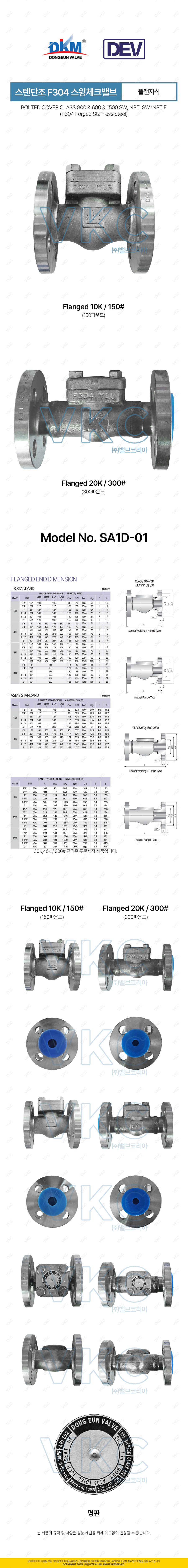 1000001701 (국산) DEV 동은밸브 ASTM F316L 스텐 단조스윙체크(F) 10K(150#) 10A~50A 플랜지식 주문제작 별도문의 (150LB 구 DKM 동강금속 스텐단조 스윙체크밸브) 이미지 확대 보기