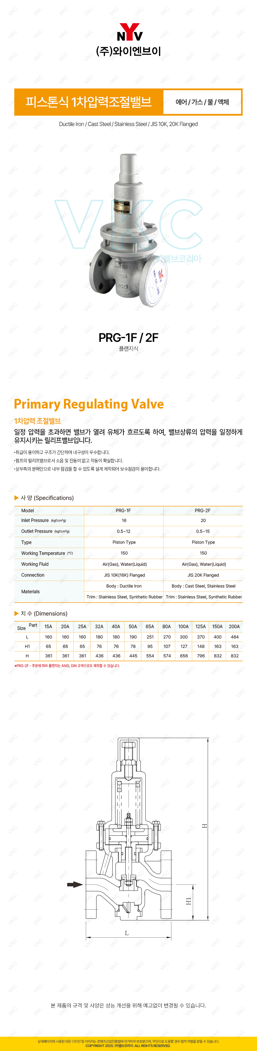 1000002011 YNV 스텐 1차압력조절밸브 PRG-2F 20K 15A~200A 플랜지식, 물, 공기, 오일 (와이엔브이 SCS13 피스톤식 감압변)